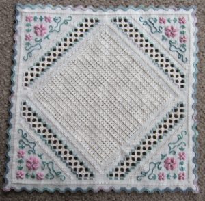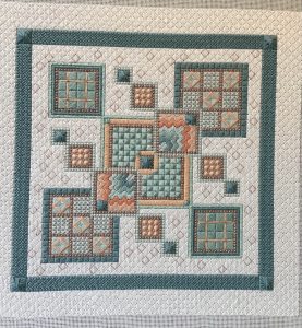 This is an original color version Teal-licious – designed by Freda Murfin of Freda’s Fancy Stitching – stitched by Marietta Douglas