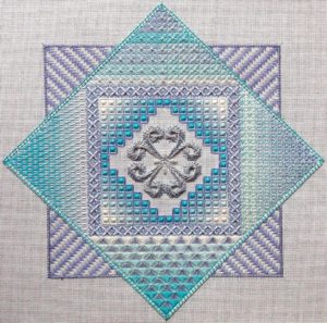 This is a recent Metropolitan Region class – Elements Tray by Carolyn Mitchell – stitched by Marietta Douglas.
